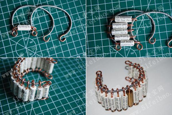 废纸手工制作是我们一直倡导的废纸回收利用方法,毕竟现在通过废品站卖废纸多少钱一斤,家庭日积月累的大堆废纸卖出去也不过换回几块钱,买菜都不够用呢。但是通过手工DIY的方法对这些废纸进行改造利用,把废纸回收做成各种特别的DIY小制作,除了给自己能带来无穷的乐趣,关键是这些废纸小制作还有真正的使用价值。今天51费宝网还是利用废纸为大家推荐一款手工DIY制作首饰的做法教程,让我们把废纸DIY做成一条特别的个性手环吧。同样的办法还可以用于制作DIY项链,看过这个教程就等着你的继续举一反三了。