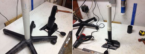 所需材料包括:废旧的气压升降椅、PVC水管、电钻、木板、螺丝、垫圈、螺丝刀、起子、钳。通过下面51费宝的手工图解制作步骤,一起学习如何将一张办公室淘汰出来的气压椅变废为宝改造成为可调整高度的升降电脑桌吧。